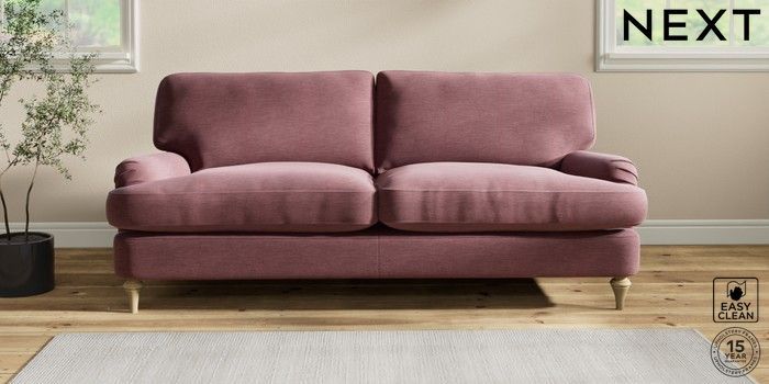 6.12.1 Buy Sadie Deep Relaxed Sit 3 Seater Sofa Fine Chenille Easy Clean Mid Mulberry Purple High Slim Turned - Light from the Next UK online shop Click here to use our accessible website