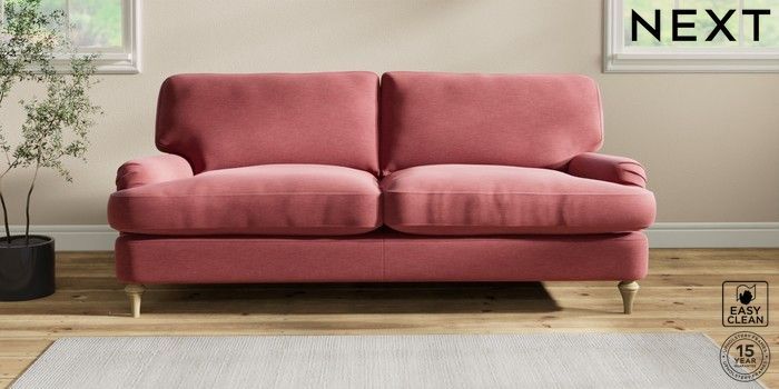 6.12.1 Buy Sadie Deep Relaxed Sit 3 Seater Sofa Fine Chenille Easy Clean Mid Pink High Slim Turned - Light from the Next UK online shop Click here to use our accessible website