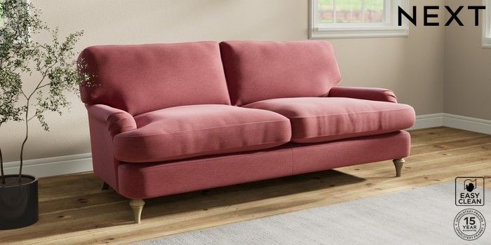 7.0.3 Buy Sadie Deep Relaxed Sit 3 Seater Sofa Fine Chenille Easy Clean Mid Pink High Slim Turned - Light from the Next UK online shop Click here to use our accessible website