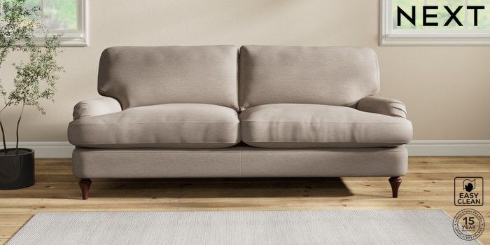 6.12.1 Buy Sadie Deep Relaxed Sit 3 Seater Sofa Fine Chenille Easy Clean Mid Taupe Brown High Slim Turned - Dark Brown from the Next UK online shop Click here to use our accessible website