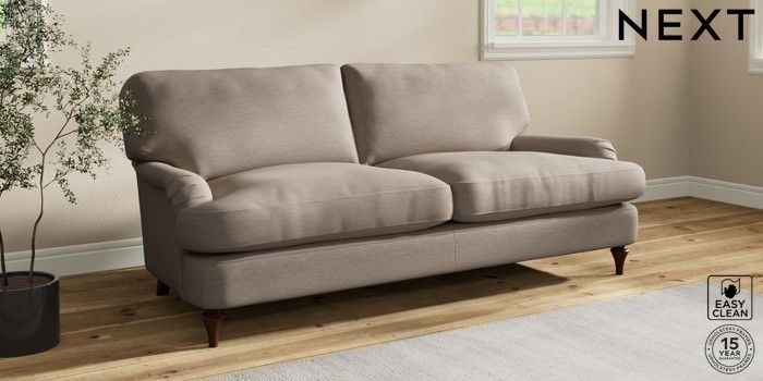 7.0.3 Buy Sadie Deep Relaxed Sit 3 Seater Sofa Fine Chenille Easy Clean Mid Taupe Brown High Slim Turned - Dark Brown from the Next UK online shop Click here to use our accessible website