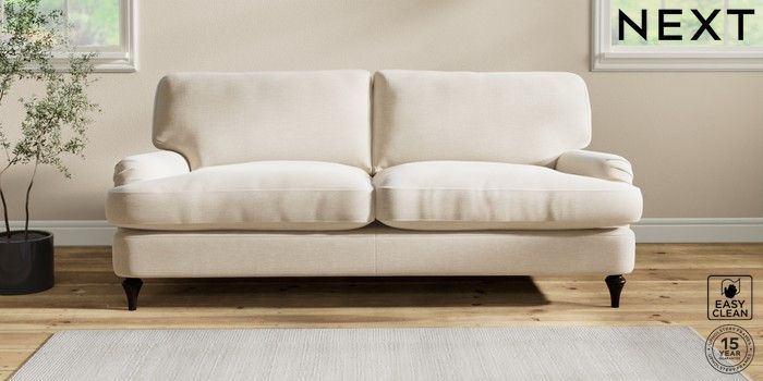 6.12.1 Buy Sadie Deep Relaxed Sit 3 Seater Sofa Fine Chenille Easy Clean Oyster High Slim Turned - Dark from the Next UK online shop Click here to use our accessible website