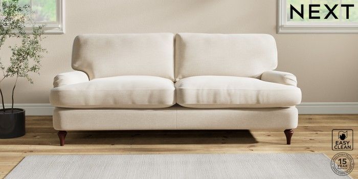 6.12.1 Buy Sadie Deep Relaxed Sit 3 Seater Sofa Fine Chenille Easy Clean Oyster High Slim Turned - Dark Brown from the Next UK online shop Click here to use our accessible website