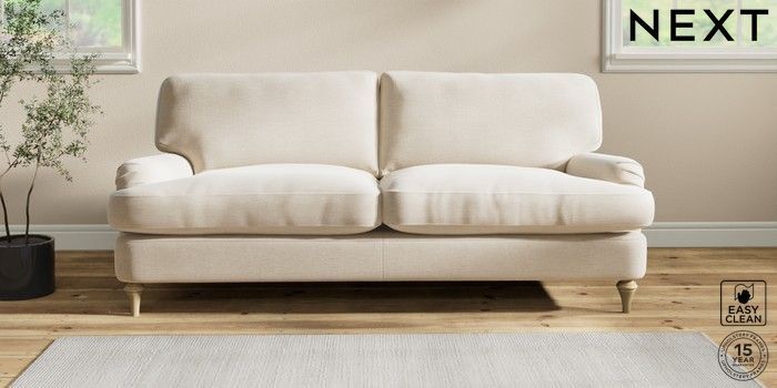 6.12.1 Buy Sadie Deep Relaxed Sit 3 Seater Sofa Fine Chenille Easy Clean Oyster High Slim Turned - Light from the Next UK online shop Click here to use our accessible website