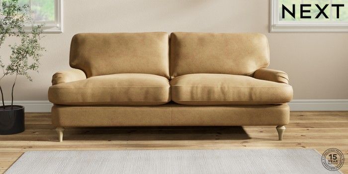6.12.1 Buy Sadie Deep Relaxed Sit 3 Seater Sofa Luxe Chenille Honey Yellow High Slim Turned - Light from the Next UK online shop Click here to use our accessible website