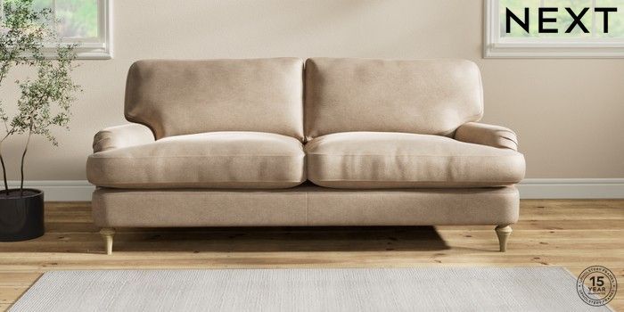 6.12.1 Buy Sadie Deep Relaxed Sit 3 Seater Sofa Luxe Chenille Mid Camel Beige High Slim Turned - Light from the Next UK online shop Click here to use our accessible website
