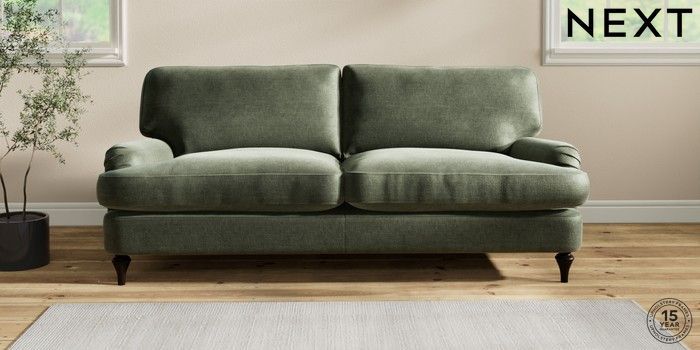 6.12.1 Buy Sadie Deep Relaxed Sit 3 Seater Sofa Luxe Chenille Mid Green High Slim Turned - Dark from the Next UK online shop Click here to use our accessible website