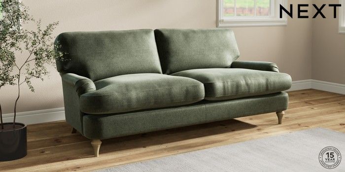 7.0.3 Buy Sadie Deep Relaxed Sit 3 Seater Sofa Luxe Chenille Mid Green High Slim Turned - Light from the Next UK online shop Click here to use our accessible website