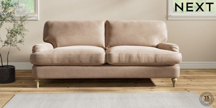 6.12.1 Buy Sadie Deep Relaxed Sit 3 Seater Sofa Luxe Chenille Mid Natural High Slim Turned - Light from the Next UK online shop Click here to use our accessible website