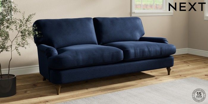 7.0.3 Buy Sadie Deep Relaxed Sit 3 Seater Sofa Luxe Chenille Navy Blue High Slim Turned - Mid from the Next UK online shop Click here to use our accessible website
