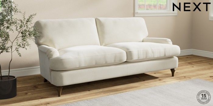 7.0.3 Buy Sadie Deep Relaxed Sit 3 Seater Sofa Luxe Chenille Oyster High Slim Turned - Mid from the Next UK online shop Click here to use our accessible website