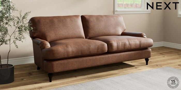 7.0.3 Buy Sadie Deep Relaxed Sit 3 Seater Sofa Monza Faux Leather Easy Clean Chestnut Brown High Slim Turned - Dark from the Next UK online shop Click here to use our accessible website