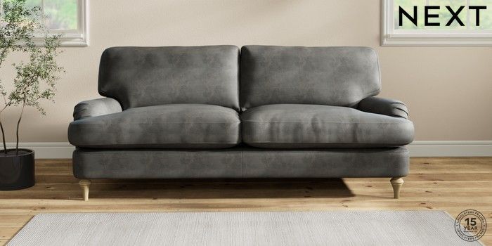 6.12.1 Buy Sadie Deep Relaxed Sit 3 Seater Sofa Monza Faux Leather Easy Clean Dark Grey High Slim Turned - Light from the Next UK online shop Click here to use our accessible website