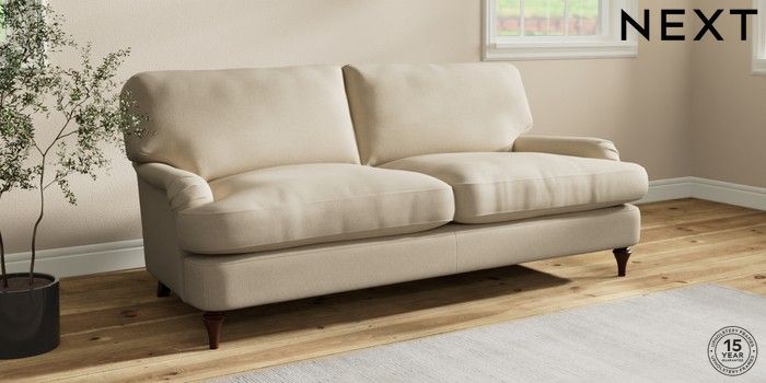 7.0.3 Buy Sadie Deep Relaxed Sit 3 Seater Sofa Natural Mix Light Natural High Slim Turned - Dark Brown from the Next UK online shop Click here to use our accessible website