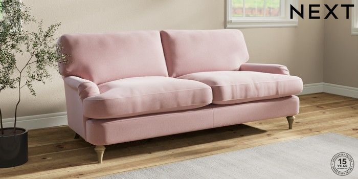 7.0.3 Buy Sadie Deep Relaxed Sit 3 Seater Sofa Natural Mix Light Rose Pink High Slim Turned - Light from the Next UK online shop Click here to use our accessible website