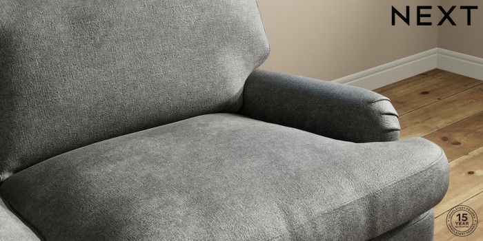 7.0.3 Buy Sadie Deep Relaxed Sit 3 Seater Sofa Plush Chenille Dark Grey High Slim Turned - Dark Brown from the Next UK online shop Click here to use our accessible website