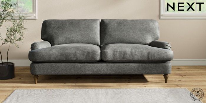 6.12.1 Buy Sadie Deep Relaxed Sit 3 Seater Sofa Plush Chenille Dark Grey High Slim Turned - Mid from the Next UK online shop Click here to use our accessible website