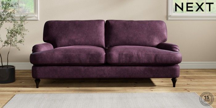 6.12.1 Buy Sadie Deep Relaxed Sit 3 Seater Sofa Plush Chenille Dark Plum Purple High Slim Turned - Dark from the Next UK online shop Click here to use our accessible website