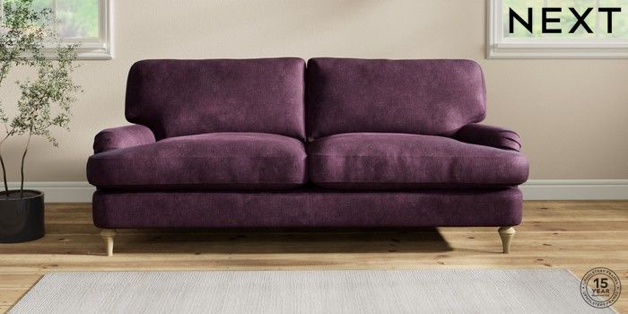 6.12.1 Buy Sadie Deep Relaxed Sit 3 Seater Sofa Plush Chenille Dark Plum Purple High Slim Turned - Light from the Next UK online shop Click here to use our accessible website