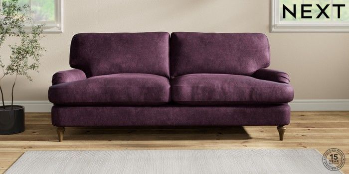 6.12.1 Buy Sadie Deep Relaxed Sit 3 Seater Sofa Plush Chenille Dark Plum Purple High Slim Turned - Mid from the Next UK online shop Click here to use our accessible website