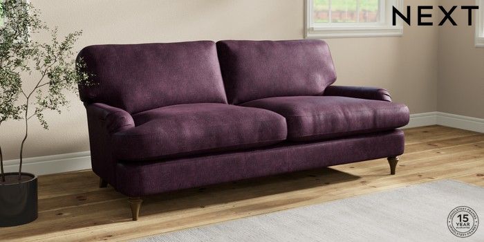 7.0.3 Buy Sadie Deep Relaxed Sit 3 Seater Sofa Plush Chenille Dark Plum Purple High Slim Turned - Mid from the Next UK online shop Click here to use our accessible website
