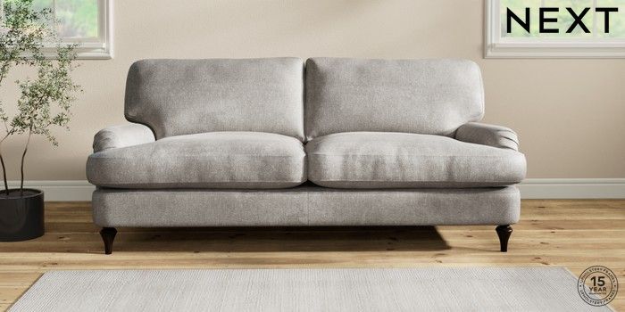6.12.1 Buy Sadie Deep Relaxed Sit 3 Seater Sofa Plush Chenille Light Grey High Slim Turned - Dark from the Next UK online shop Click here to use our accessible website
