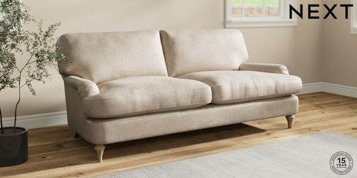 7.0.3 Buy Sadie Deep Relaxed Sit 3 Seater Sofa Plush Chenille Light Natural High Slim Turned - Light from the Next UK online shop Click here to use our accessible website
