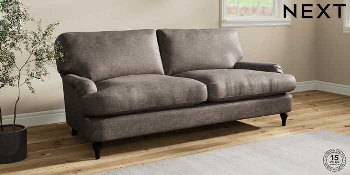 7.0.3 Buy Sadie Deep Relaxed Sit 3 Seater Sofa Plush Chenille Mink Brown High Slim Turned - Dark from the Next UK online shop Click here to use our accessible website
