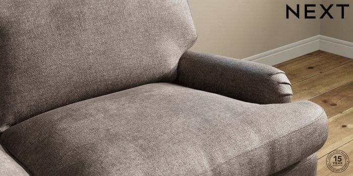 7.0.3 Buy Sadie Deep Relaxed Sit 3 Seater Sofa Plush Chenille Mink Brown High Slim Turned - Mid from the Next UK online shop Click here to use our accessible website
