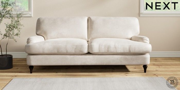 6.12.1 Buy Sadie Deep Relaxed Sit 3 Seater Sofa Plush Chenille Oyster High Slim Turned - Dark from the Next UK online shop Click here to use our accessible website