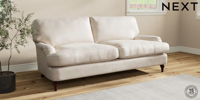 7.0.3 Buy Sadie Deep Relaxed Sit 3 Seater Sofa Plush Chenille Oyster High Slim Turned - Dark Brown from the Next UK online shop Click here to use our accessible website