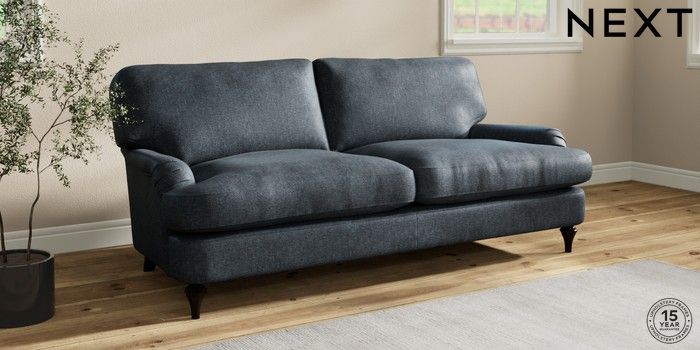 7.0.3 Buy Sadie Deep Relaxed Sit 3 Seater Sofa Plush Chenille Slate Blue High Slim Turned - Dark from the Next UK online shop Click here to use our accessible website