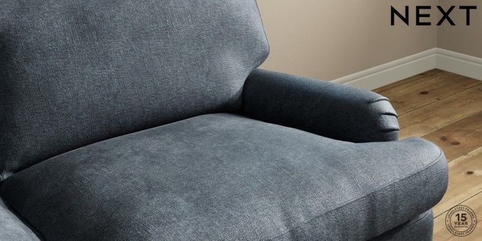 7.0.3 Buy Sadie Deep Relaxed Sit 3 Seater Sofa Plush Chenille Slate Blue High Slim Turned - Dark Brown from the Next UK online shop Click here to use our accessible website