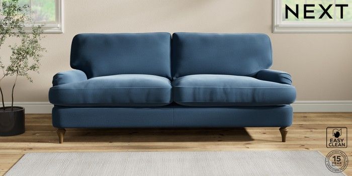6.12.1 Buy Sadie Deep Relaxed Sit 3 Seater Sofa Plush Velvet Easy Clean Airforce Blue High Slim Turned - Mid from the Next UK online shop Click here to use our accessible website