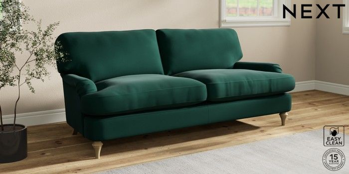 7.0.3 Buy Sadie Deep Relaxed Sit 3 Seater Sofa Plush Velvet Easy Clean Bottle Green High Slim Turned - Light from the Next UK online shop Click here to use our accessible website
