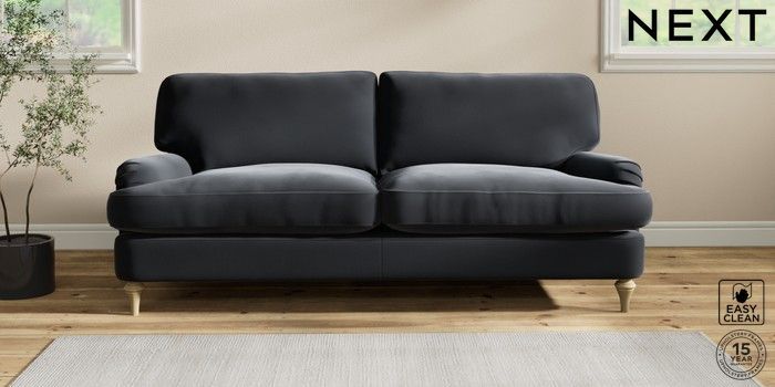 6.12.1 Buy Sadie Deep Relaxed Sit 3 Seater Sofa Plush Velvet Easy Clean Charcoal Grey High Slim Turned - Light from the Next UK online shop Click here to use our accessible website