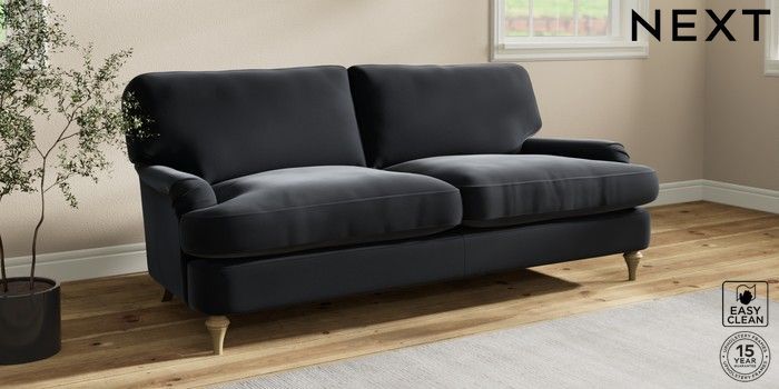7.0.3 Buy Sadie Deep Relaxed Sit 3 Seater Sofa Plush Velvet Easy Clean Charcoal Grey High Slim Turned - Light from the Next UK online shop Click here to use our accessible website