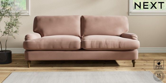 6.12.1 Buy Sadie Deep Relaxed Sit 3 Seater Sofa Plush Velvet Easy Clean Mid Natural High Slim Turned - Mid from the Next UK online shop Click here to use our accessible website