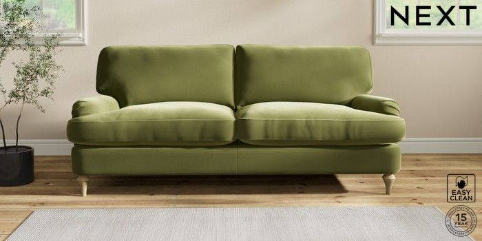 6.12.1 Buy Sadie Deep Relaxed Sit 3 Seater Sofa Plush Velvet Easy Clean Mid Olive Green High Slim Turned - Light from the Next UK online shop Click here to use our accessible website