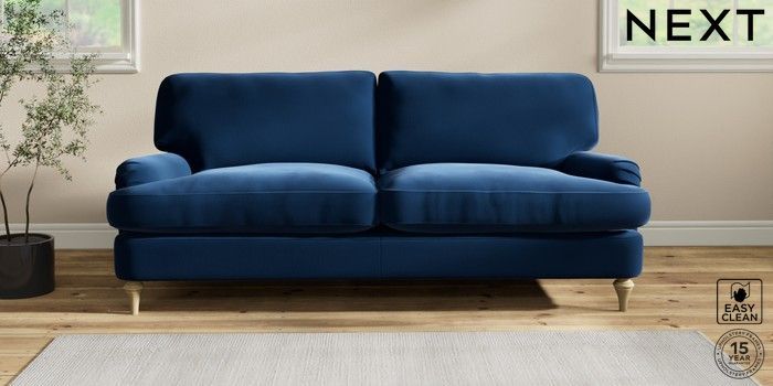6.12.1 Buy Sadie Deep Relaxed Sit 3 Seater Sofa Plush Velvet Easy Clean Navy Blue High Slim Turned - Light from the Next UK online shop Click here to use our accessible website