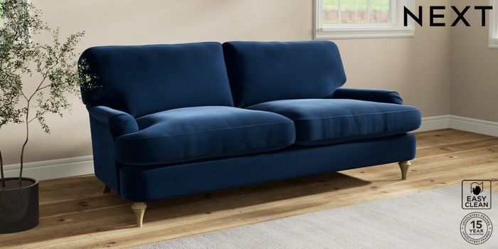 7.0.3 Buy Sadie Deep Relaxed Sit 3 Seater Sofa Plush Velvet Easy Clean Navy Blue High Slim Turned - Light from the Next UK online shop Click here to use our accessible website