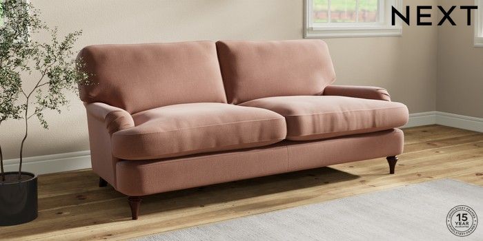 7.0.3 Buy Sadie Deep Relaxed Sit 3 Seater Sofa Relaxed Linen Look Light Rust Brown High Slim Turned - Dark Brown from the Next UK online shop Click here to use our accessible website