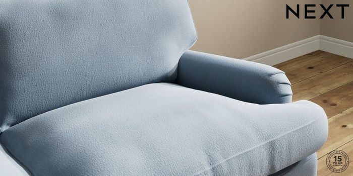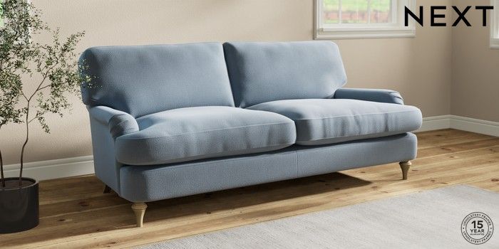 7.0.3 Buy Sadie Deep Relaxed Sit 3 Seater Sofa Relaxed Linen Look Mid Blue High Slim Turned - Light from the Next UK online shop Click here to use our accessible website