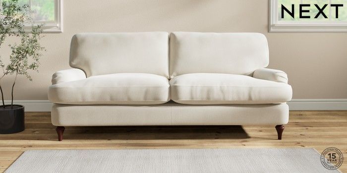 6.12.1 Buy Sadie Deep Relaxed Sit 3 Seater Sofa Relaxed Linen Look Oyster High Slim Turned - Dark Brown from the Next UK online shop Click here to use our accessible website