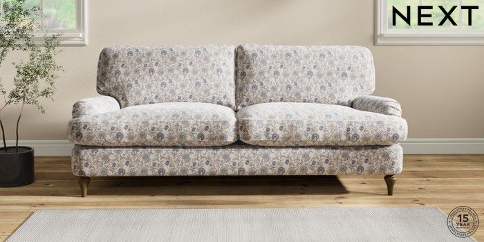 7.2.6 Buy Sadie Deep Relaxed Sit 3 Seater Sofa Relaxed Linen Look Print Woodblock Floral Blue High Slim Turned - Mid from the Next UK online shop Click here to use our accessible website