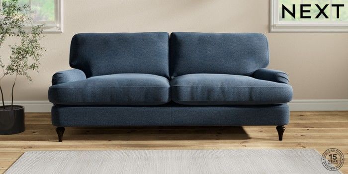 6.12.1 Buy Sadie Deep Relaxed Sit 3 Seater Sofa Ripple Chenille Dark Blue High Slim Turned - Dark from the Next UK online shop Click here to use our accessible website