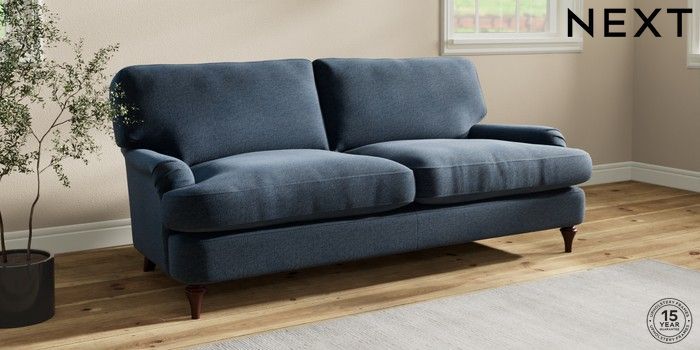 7.0.3 Buy Sadie Deep Relaxed Sit 3 Seater Sofa Ripple Chenille Dark Blue High Slim Turned - Dark Brown from the Next UK online shop Click here to use our accessible website