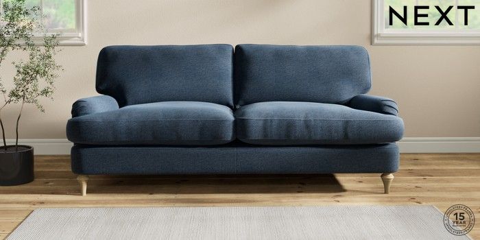 6.12.1 Buy Sadie Deep Relaxed Sit 3 Seater Sofa Ripple Chenille Dark Blue High Slim Turned - Light from the Next UK online shop Click here to use our accessible website