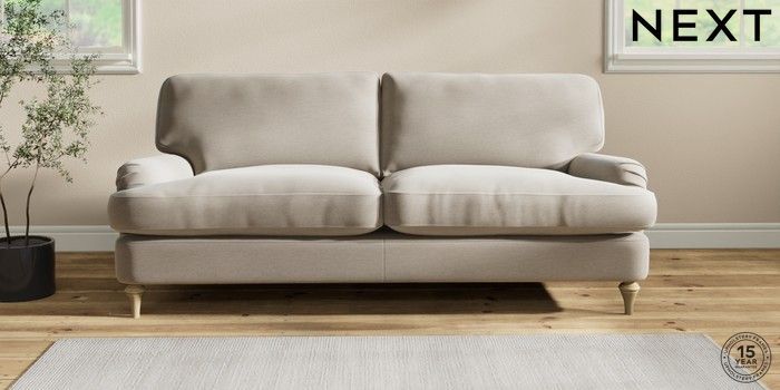 6.12.1 Buy Sadie Deep Relaxed Sit 3 Seater Sofa Ripple Chenille Light Natural High Slim Turned - Light from the Next UK online shop Click here to use our accessible website