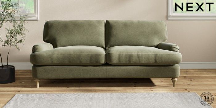 6.12.1 Buy Sadie Deep Relaxed Sit 3 Seater Sofa Ripple Chenille Mid Moss Green High Slim Turned - Light from the Next UK online shop Click here to use our accessible website